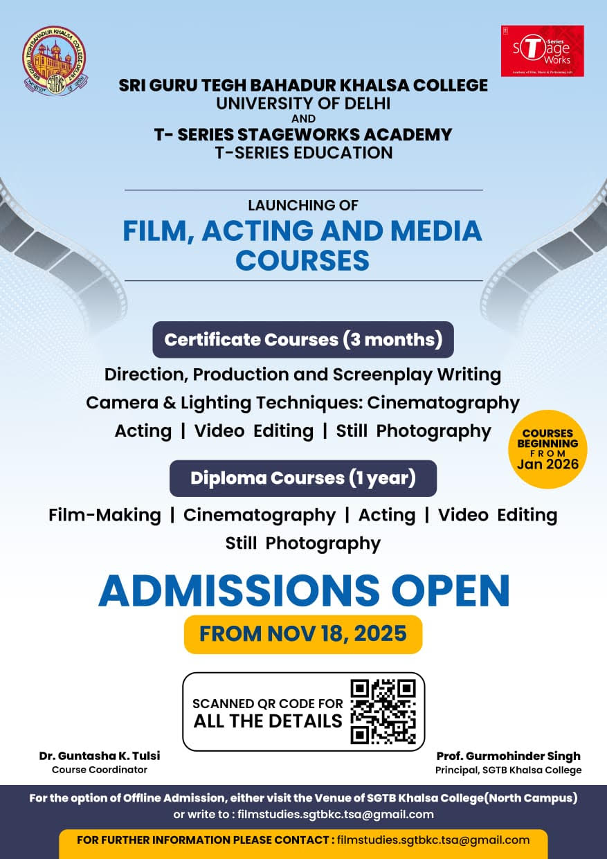 Sri Guru Tegh Bahadur Khalsa College is an institution which believes in inviting the world to participate and celebrate with the college all the events and programs it organizes. Towards the facilitation of this, the college has a vibrant media presence: both in its traditional forms and through the newer social media channels, handled by the media committee of the college.