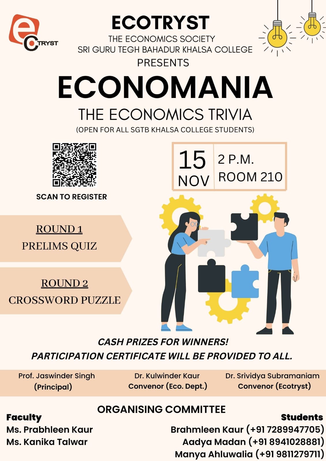 - Economania-An intra-college Economics Trivia was held on 15 November, 2022 to test students' Business, Economics and Financial knowledge through a series of eclectic questions and a crossword puzzle.
