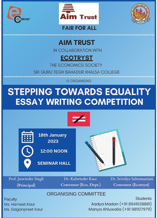 - Ecotryst in collaboration with AIM Trust, organised an essay writing competition on 18 January 2023, on the topic “Rising Inequality: A Cause of Concern”.