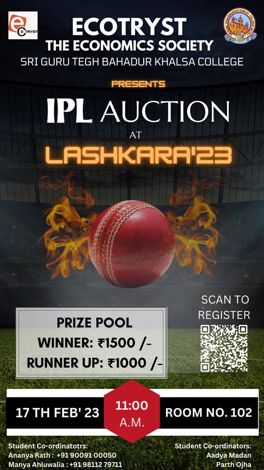 - Lashkara 2023- IPL Auction- an inter-college IPL Auction on 17 March 2023 as part of the cultural festival, Lashkara 2023.
