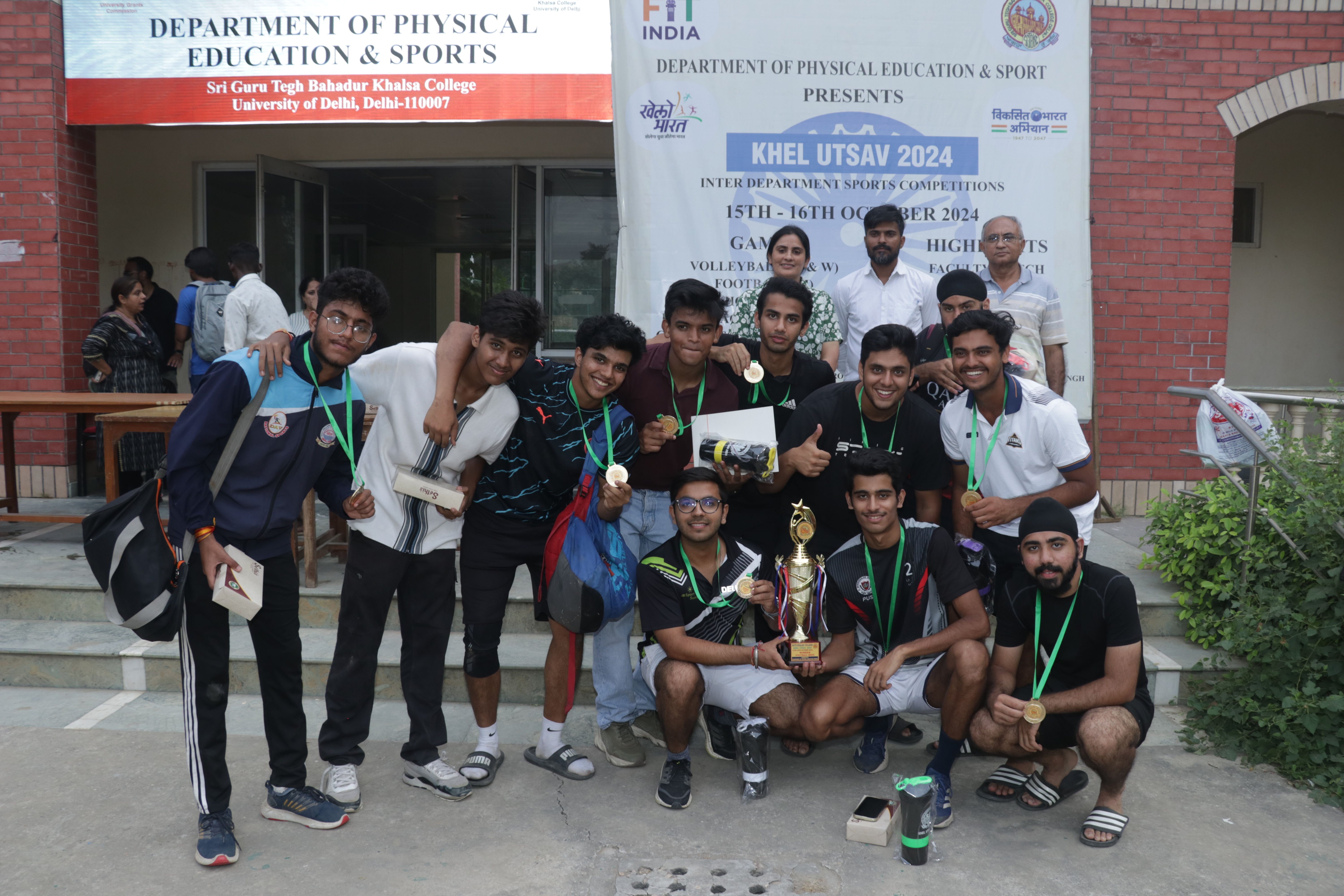 The Department of Physical Education & Sports initiates the physical activity among students through conducting the annual event of Khelutsav – an Inter department competition among various games in both categories men & Women. The motive of the event is to promote fitness, spirit of sportsmanship and team harmony among students. This year the Khelutsav was conducted in Volleyball (M&W), Kho-Kho (W), Football (M), Cross Fit Challenge (M&W) and Relay Race (4X400m) (M& W) on 15th & 16th October 2024 at college grounds. The primarily rounds were played on 15th October 2024. On sunny day of 16th October 2024, a teaching & Non-teaching Faculty 20-20 Cricket match was played to unite the college faculty of the college at game front. Khalsa Teaching faculty won the cricket match by 49 runs from Khalsa Non-teaching faculty. The inter department competition results as follows: