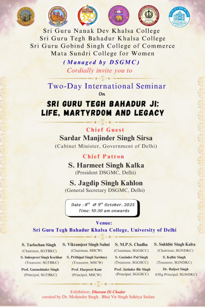 Sri Guru Tegh Bahadur Khalsa College is a prestigious institute for higher studies with a long history and legacy of promoting, preserving and serving the principles of Sikhi.The institute upholds a learning culture which promotes life-long learning and open-mindedness to adopt, adapt, change and grow – as encapsulated in the word ‘Sikh’- or learner...
